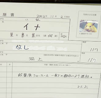 【ニェット】 ・・・証明写真がハムスターのプリクラってなんだよ。 【ノン】 ・・・住所は修正液だらけだし。 |