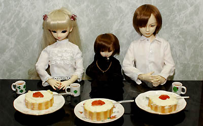 【ニェット】 イヤのために僕が買ってきたケーキだよ。 【イヤ】 ありがと。 【ノン】 (ノンのために買ってきてもらった記憶ないんだけど) |