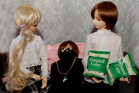 【ニェット】 僕とノンで半分コするから、イヤは1コ食べていいよ。ね? 【ノン】 (イヤとニェットで半分コじゃないの?) |