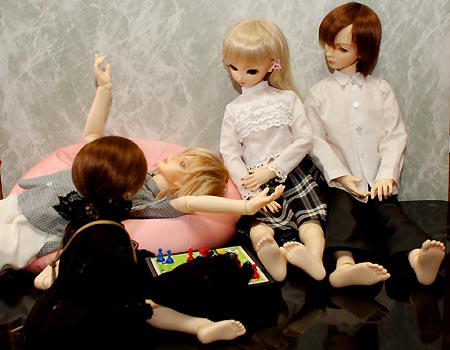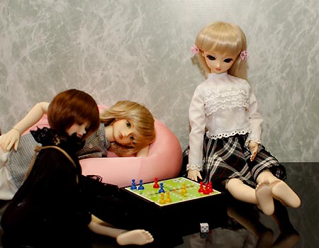 外は雨なので仕方なくテーブルゲームをしています。 |