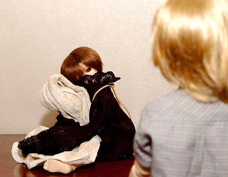 【イエス】 イヤちゃん? 毛布なんか抱えてどうしたの? もうお休みなさいしたんじゃないの? 【イヤ】 イヤ、こわい夢、みた。イヤ、寝たくない。 |