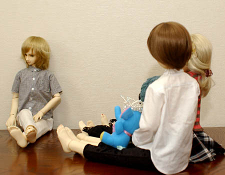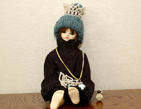 イヤの宝物。 「お友達から貰ったビーズの王冠2コ、毛糸の帽子、アーチャから貰ったイヌ」 |